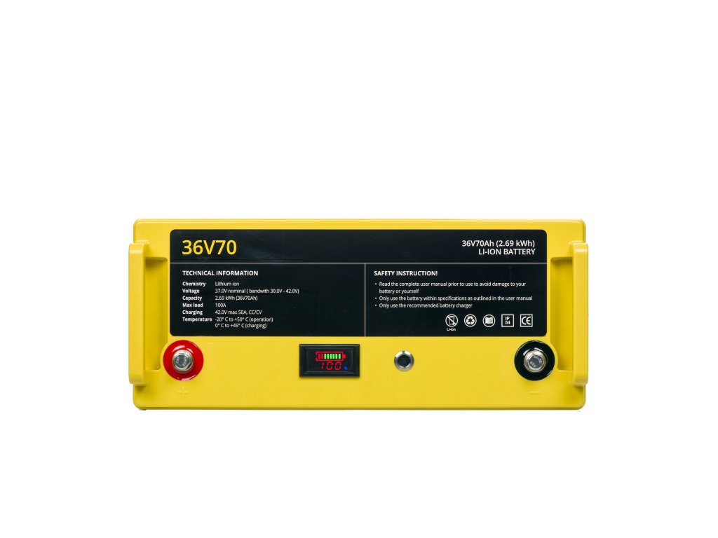 • 🔋 Kapacita 70 Ah / 36V (2,5 kWh) – Perfektní pro lodní elektromotory do 100 lb a energeticky náročné 36V aplikace.