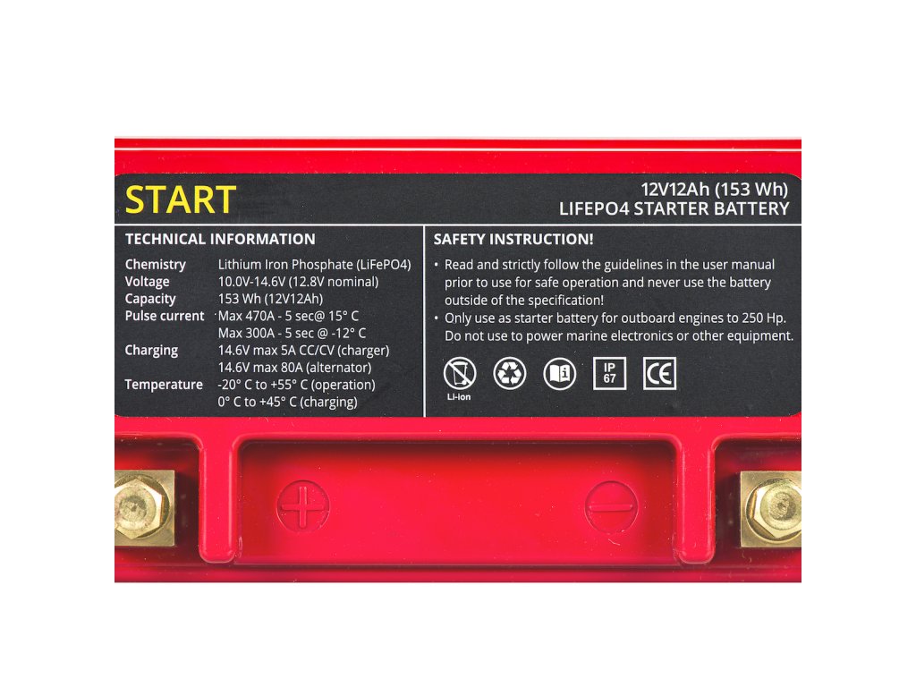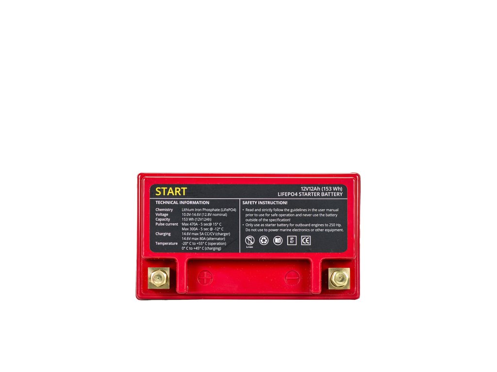 Rebelcell Start LiFePO4 je lehká a extrémně výkonná startovací lithiová baterie, určená pro spolehlivé startování lodních a spalovacích motorů do 250 hp. Díky LiFePO4 technologii, hmotnosti pouhých 1,9 kg a životnosti až 2 000 cyklů poskytuje okamžitý náběh, vysoký startovací proud a dlouhou výdrž bez údržby. Odolné provedení a integrovaný BMS systém zajišťují maximální bezpečnost. Ideální volba pro ty, kteří vyžadují jistotu při každém startu.