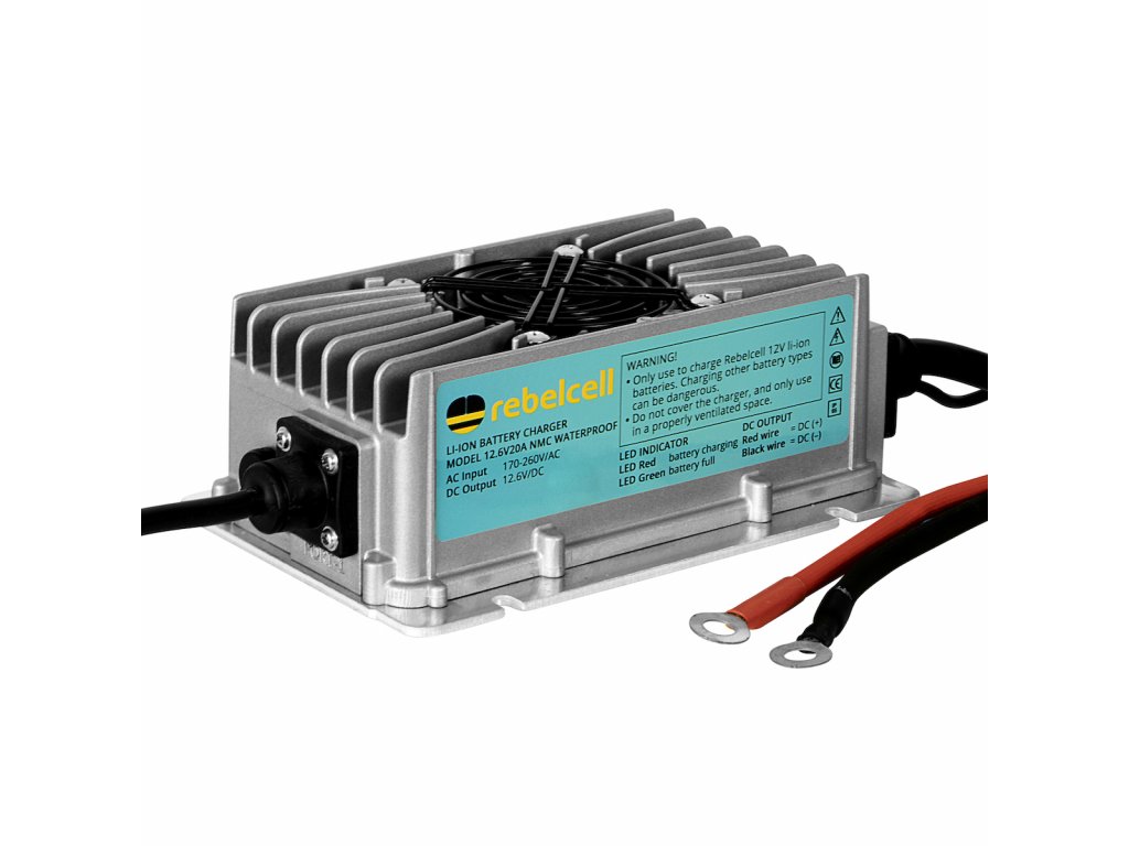 🔋💧 Rebelcell Vodotěsná lithiová nabíječka 12,6V 20A – Výkonné a odolné nabíjení pro 12V baterie bez kompromisů
